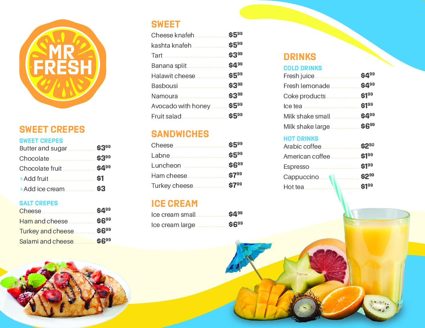 Featuring classics like Baklava, Basbousi, alongside fruit tarts, and kid’s treats like jello, ice cream and smoothies.